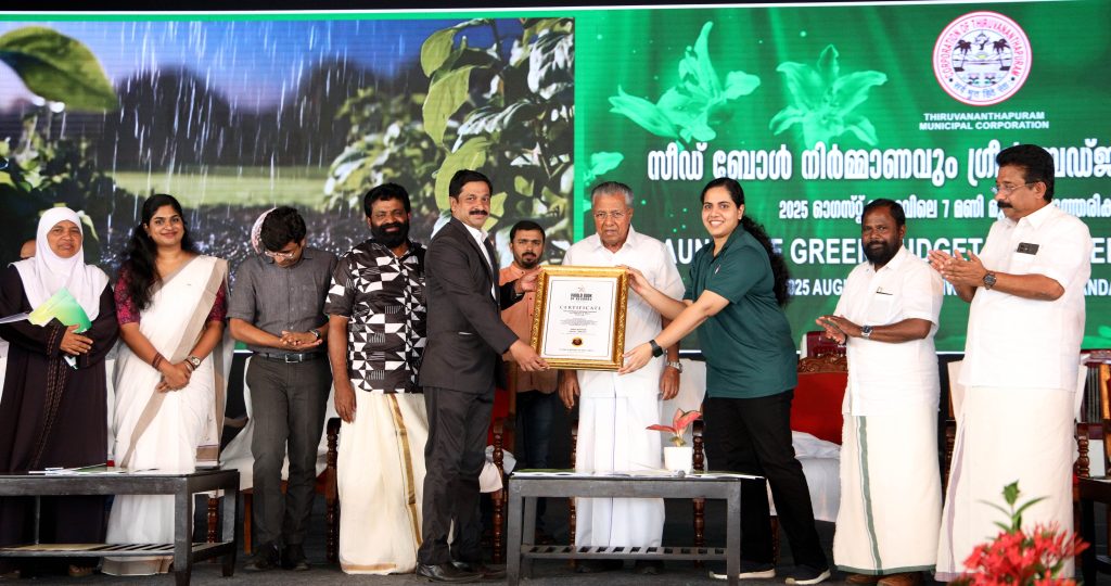 നഗരസഭ തയ്യാറാക്കിയ ഗ്രീൻ ബജറ്റ് മുഖ്യമന്ത്രി മേയർ ആര്യ രാജേന്ദ്രന് നൽകി പ്രകാശനം ചെയ്തു. തലസ്ഥാനത്തെ കാർബൺ രഹിതമാക്കുന്നതിനായി വിദ്യാർത്ഥികൾ കൈകോർത്ത സീഡ് ബോൾ നിർമ്മാണം വേൾഡ് ബുക്ക് ഓഫ് റെക്കോർഡ്സിലേക്ക് പരിഗണിക്കപ്പെട്ടതിന്റെ പ്രൊവിഷണൽ സർട്ടിഫിക്കറ്റ് വേൾഡ് ബുക്ക് ഓഫ് റെക്കോർഡ്സ് ഇന്ത്യ പ്രതിനിധി റെനീഷ് മേയർ ആര്യ രാജേന്ദ്രന് കൈമാറി.