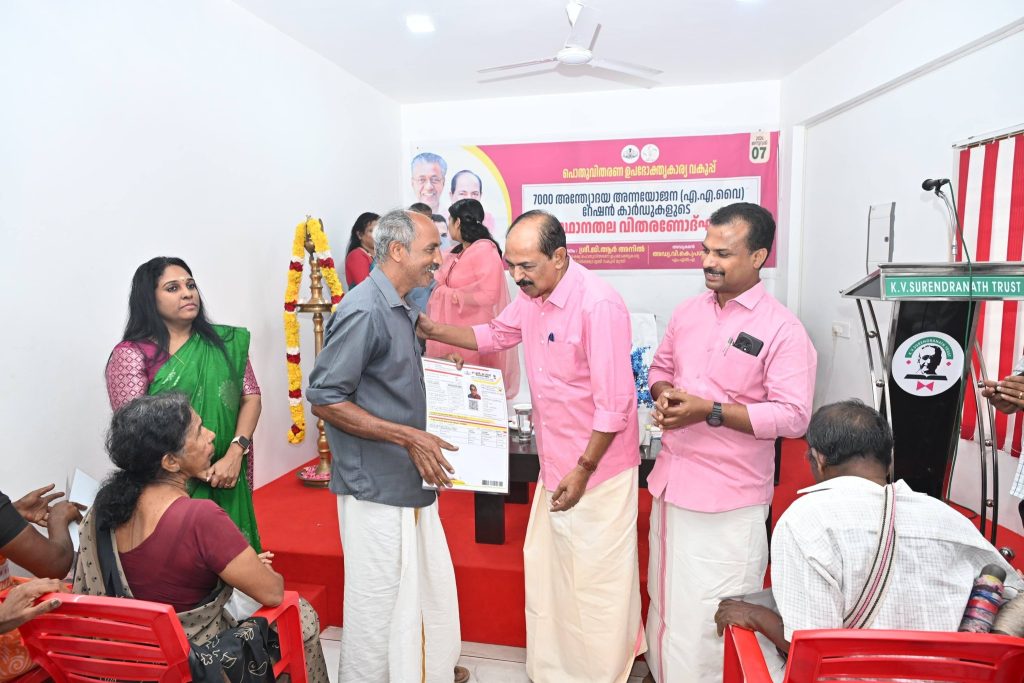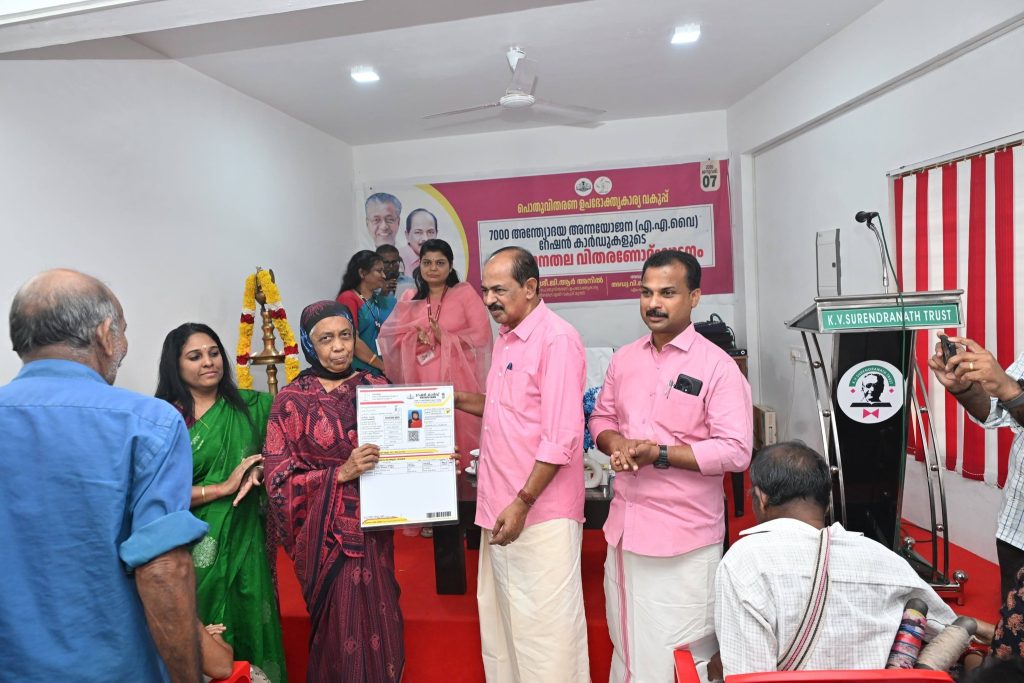 7,000 കുടുംബങ്ങൾക്കുള്ള അന്ത്യോദയ അന്നയോജന റേഷൻ കാർഡുകളുടെ സംസ്ഥാനതല വിതരണോദ്ഘാടനം തിരുവനന്തപുരത്ത് ആശാൻ സ്മാരക ഹാളിൽ ഭക്ഷ്യ പൊതുവിതരണ വകുപ്പ് മന്ത്രി ജി.ആർ. അനിൽ നിർവഹിച്ചു. സംസ്ഥാനത്തെ അർഹരായ എല്ലാ കുടുംബങ്ങൾക്കും റേഷൻ കാർഡ് ലഭ്യമാക്കുകയാണ് സർക്കാരിന്റെ ലക്ഷ്യമെന്ന് മന്ത്രി പറഞ്ഞു.