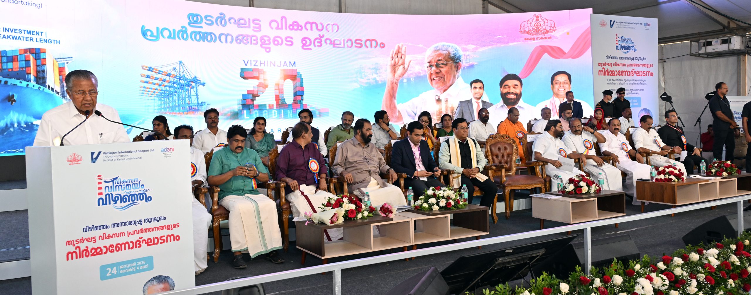 2024 ജൂലായിൽ വിഴിഞ്ഞത്ത് ആദ്യ മദർഷിപ്പ് വന്നു. 2025 മെയ് 2ന് ഈ തുറമുഖം നാടിനു സമർപ്പിക്കുകയും ചെയ്തു. ‘ഇതൊന്നും കേരളത്തിന് പറ്റിയ കാര്യമല്ല’ എന്ന് പറഞ്ഞ് നമ്മെ ആക്ഷേപിച്ചവരും പരിഹസിച്ചവരുമുണ്ട്. ആ പരിഹാസങ്ങൾക്കും ആക്ഷേപങ്ങൾക്കും മറുപടിയായാണ് വിഴിഞ്ഞം പദ്ധതി കേരളം യാഥാർഥ്യമാക്കി കാണിച്ചതെന്ന് മുഖ്യമന്ത്രി പറഞ്ഞു.